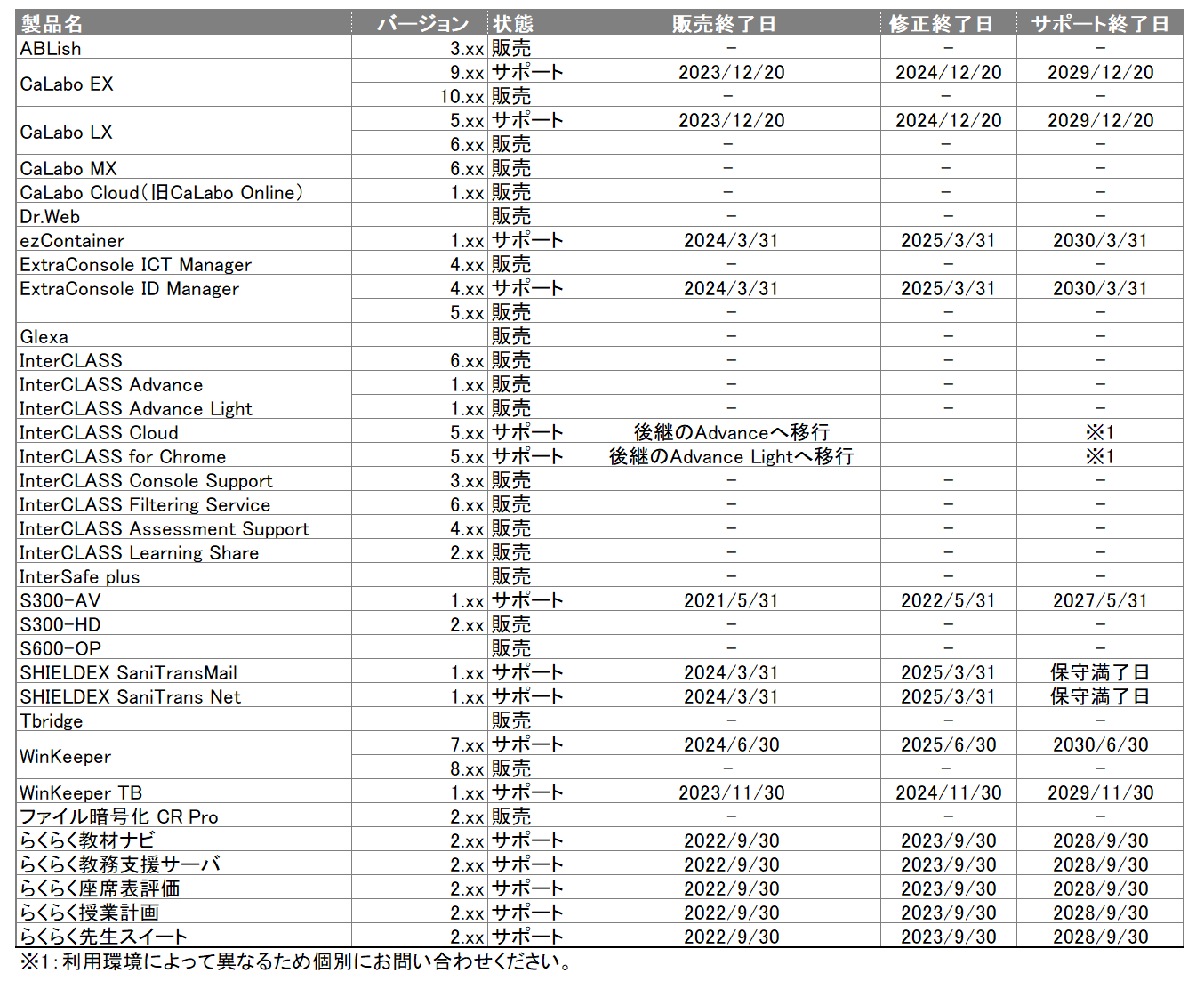 | ※2: | ライセンス期限(最長6年)内において、販売終了後1年以上経過し、新バージョンのリリースにより2世代前になった時点でサポートを終了します。 |