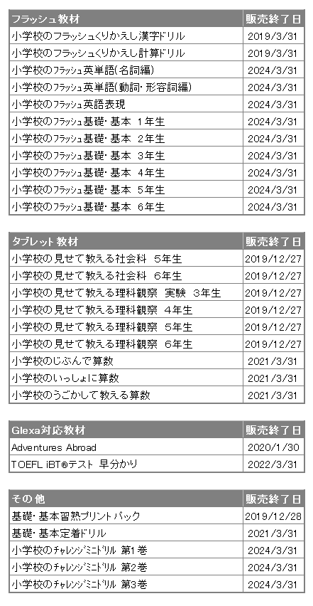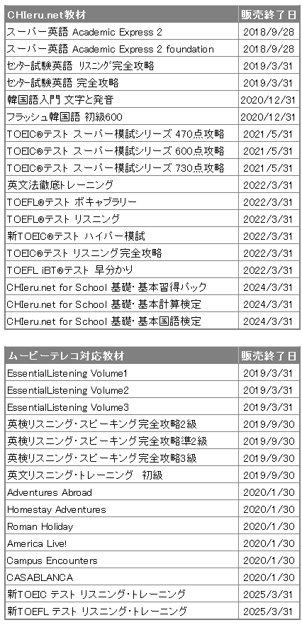 教材の販売終了については以下をご確認ください。不明な点は弊社サポートまでお問合せください。